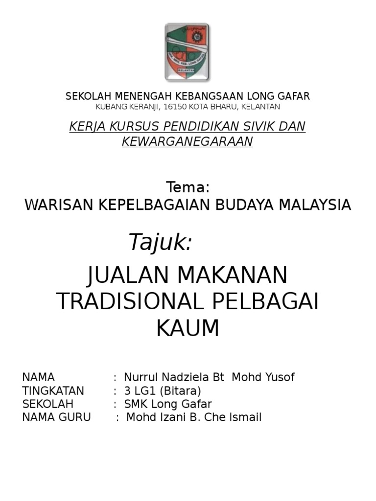 Contoh Folio 1 Penghargaan Syukur Alhamdulillah Kepada Allah S W T Kerana Dengan Berkat Dan Keizinan Dari Nya Maka Saya Telah Dapat Menyiapkan Tugasan Course Hero from www.coursehero.com Menjadikan bangsa tersebut istimewa dan unik. Organized by badan warisan malaysia in collaboration with think city institute. Di melaka, destinasi wajib untuk dikunjungi apabila menyebut berkenaan muzium adalah muzium kesultanan melayu melaka yang terletak di bandar hilir. Bismillahirahmanirahim dan assalamualaikum kepada semua pembaca. Capati yang diolah dari gandum tulin mempunyai banyak khasiat dan makanan sesuai untuk penyakit kencing manis dan darah tinggi. 5 bakti n 5 beta. Warisan kepelbagaian budaya malaysia a. Mengekalkan identiti sesebuah bangsa atau kaum.